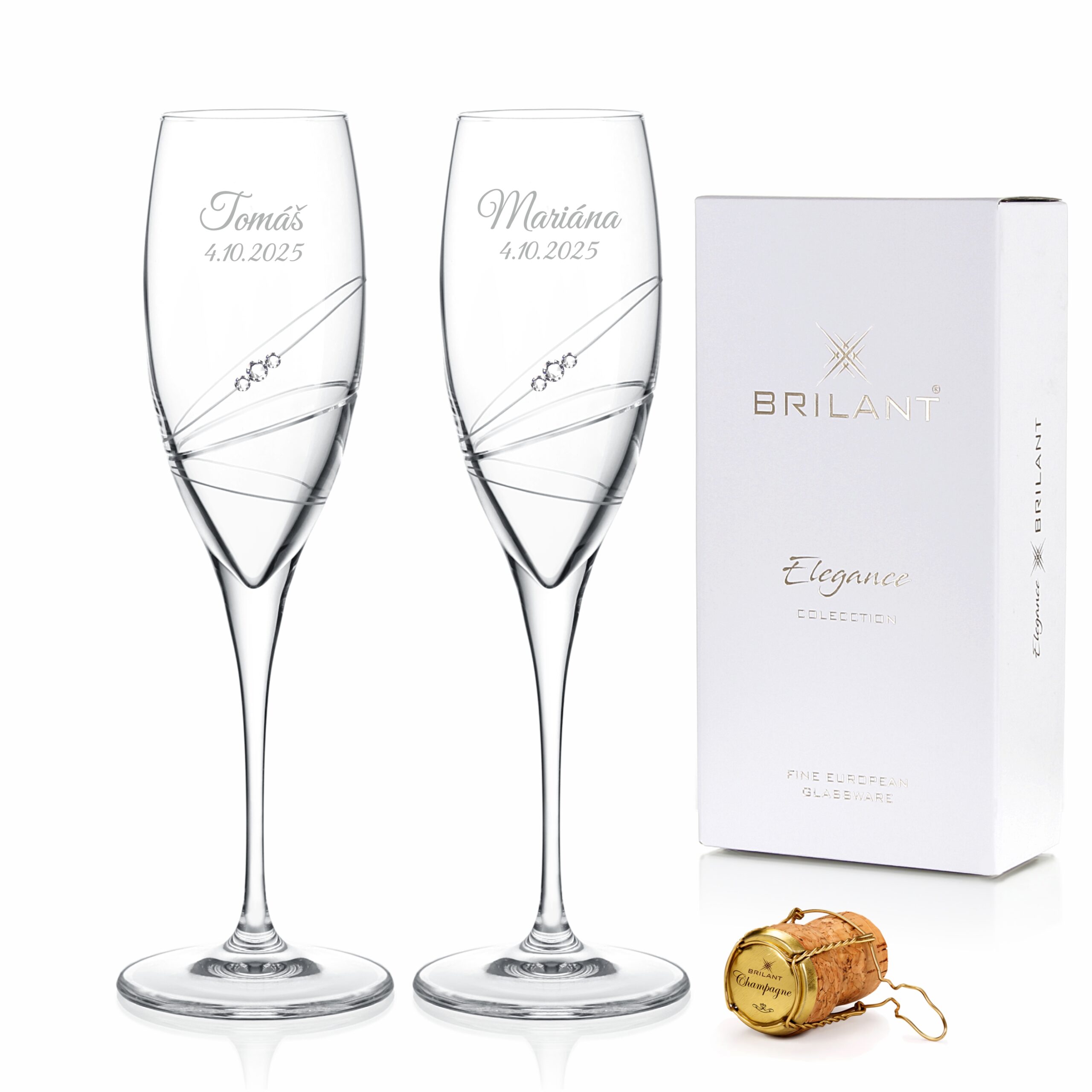 Oslávte lásku s krásnym radom svadobných a zásnubných darčekov Brilant. Decentné gravírované srdiečka ako symbol nového partnerského zväzku, umocnené leštenou linkou na pohároch zdobené kryštálmi Swarovski. Výnimočný minimalistický dizajn dodáva týmto pohárom na stopke nádych a iskru.Táto svadobná súprava skla je 100% zárukou dokonalého doručenia s profesionálnym zákazníckym servisom. Ak budú poháre pri doručení akokoľvek poškodené, bezplatne Vám pošleme náhradu za poškodený kus. Vaša spokojnosť je našou prioritou.