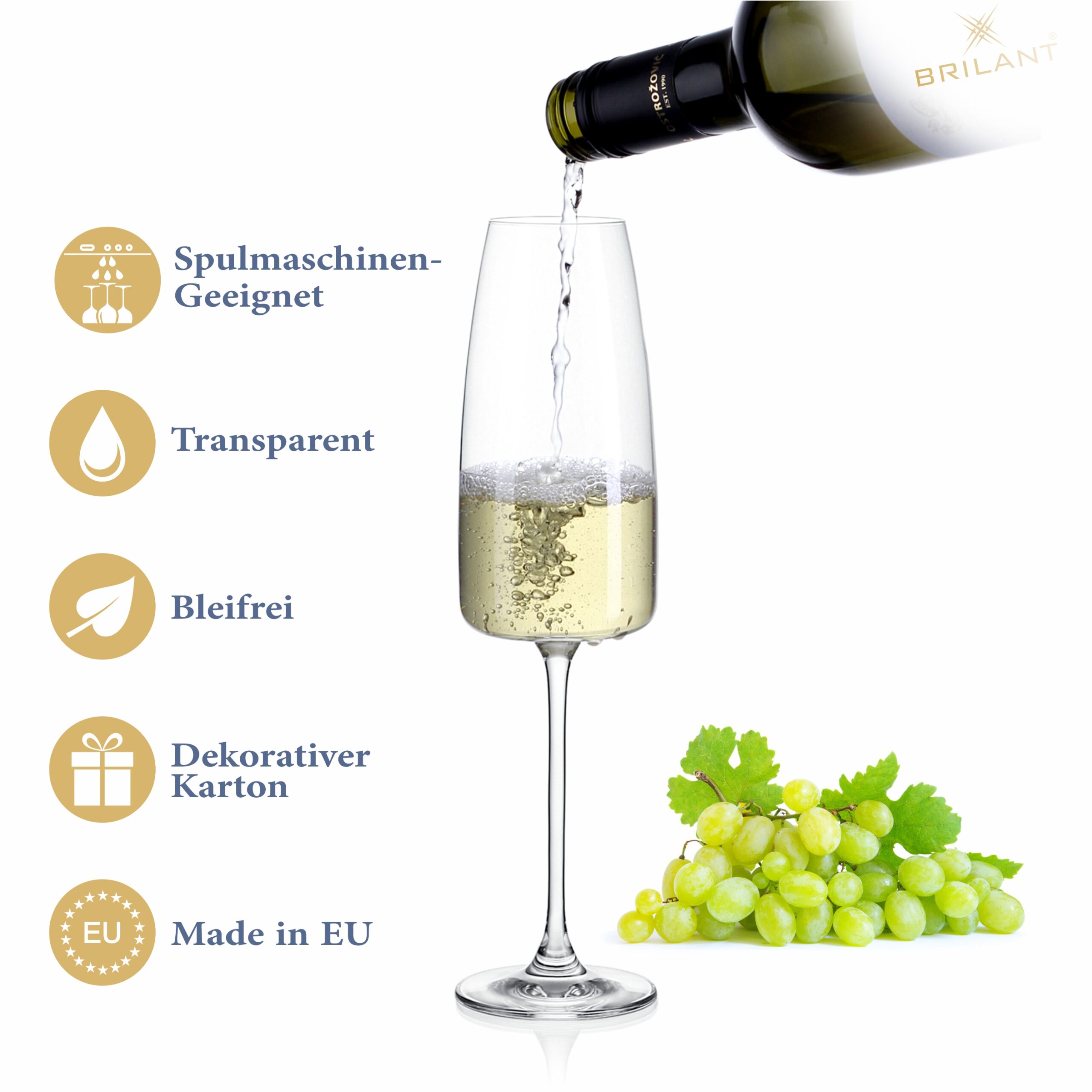 Vďaka precíznemu spracovaniu a vyváženému tvaru dokonale zvýraznia perlenie aj arómu prosecca.