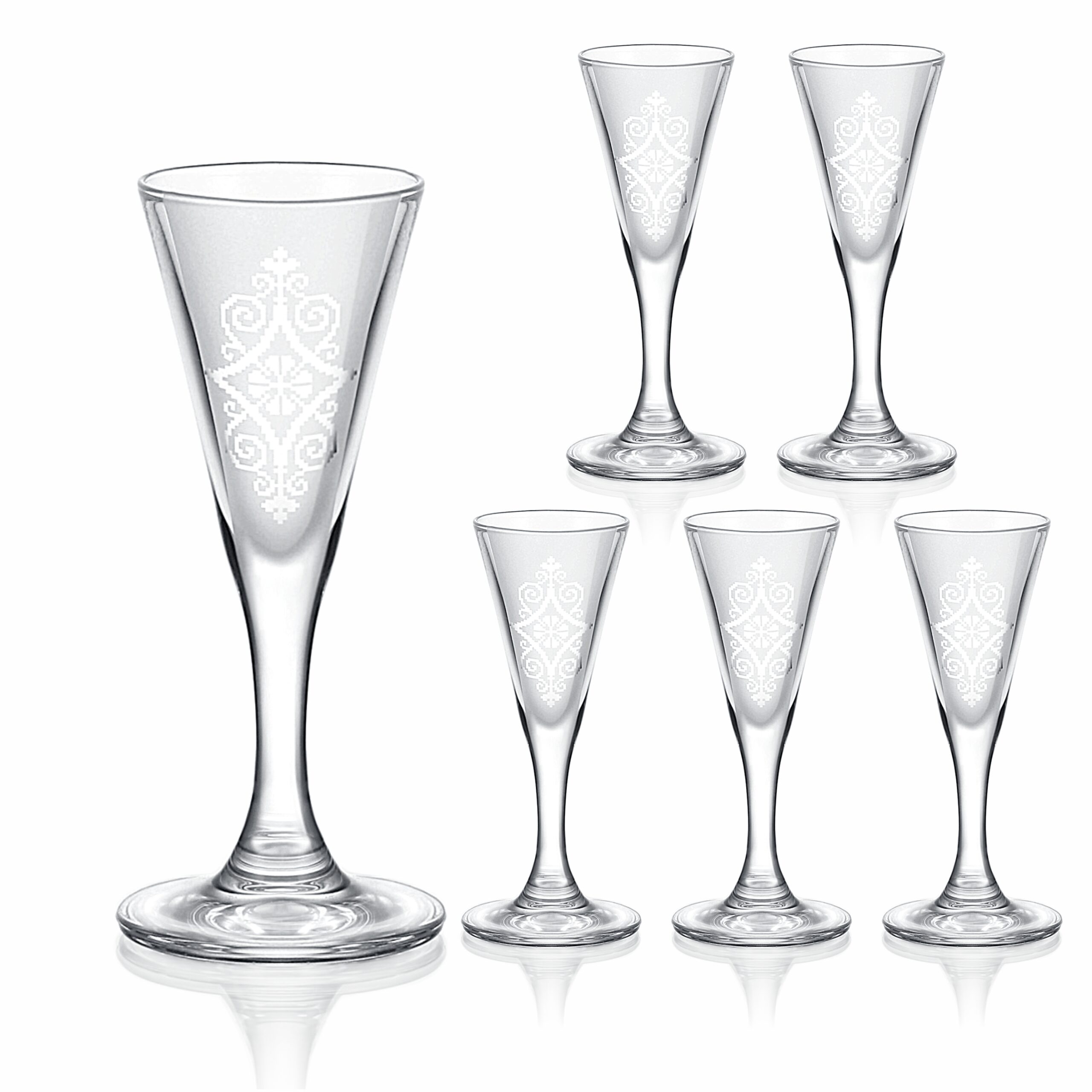 Jedinečné gravírované poháriky na destiláty s folklórnym motívom, ktoré dokonale spájajú tradíciu a eleganciu. Každý pohárik je zdobený detailnou grafikou inšpirovanou ľudovou výšivkou, ktorá odráža bohaté kultúrne dedičstvo a precíznu remeselnú prácu.