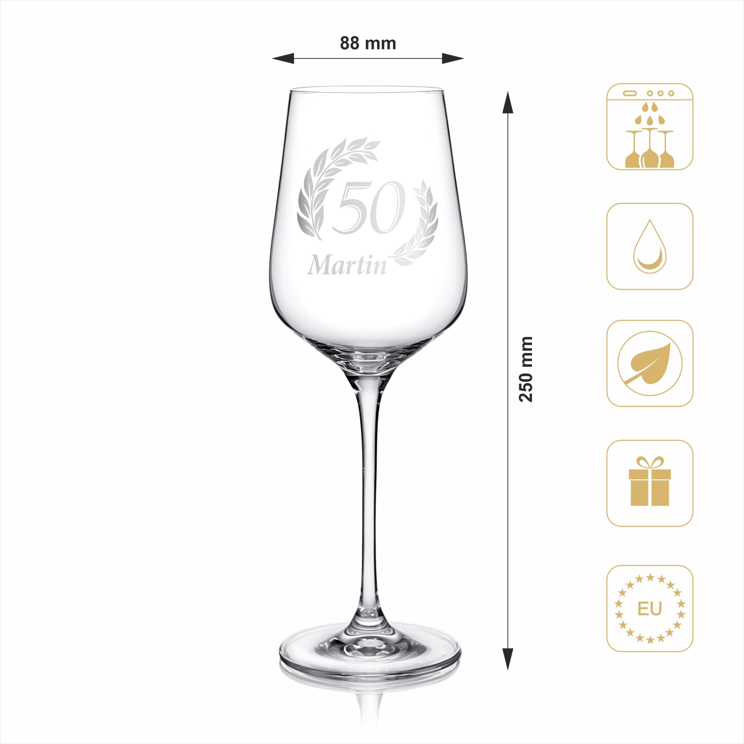 Dopraj si svoj obľúbený pohár vína so štýlom! Tento elegantný pohár na víno s gravírovaním, ti vyčarí úsmev pri každom prípitku.